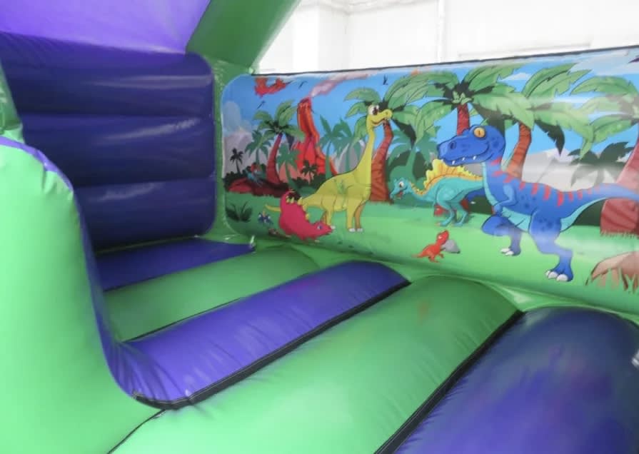 This eye-catching inflatable features a giant 3D dinosaur head with the slide coming straight out of its mouth, giving kids the thrill of sliding through the jaws of a roaring dinosaur! 🦷🛝
