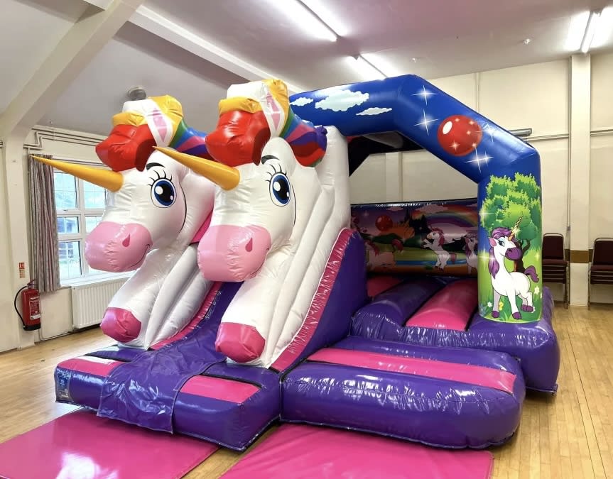 This beautiful inflatable features two adorable 3D unicorns at the front with the slides coming straight down between them, giving children an exciting and enchanting sliding experience they’ll absolutely love 🌈🛝